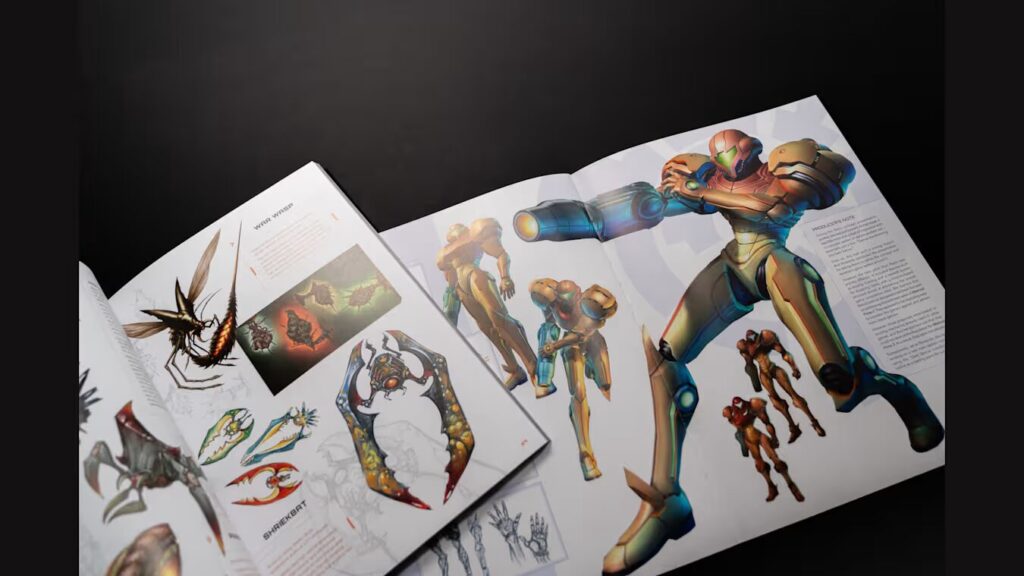 完整版藝術書共 212 頁,除收錄海量未公開草稿與開發筆記外,還包括系列製作人 田邊賢輔(Kensuke Tanabe) 的序言,以及 Retro Studios 開發團隊撰寫的遊戲回顧文。每一章皆附上開發者註解,揭露設計理念與當年技術挑戰,堪稱是「Metroid Prime 世界觀最完整的官方記錄」。