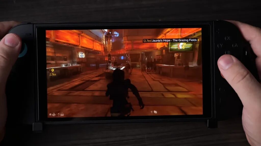 技術面才是這次體驗的最大驚喜。Digital Foundry 的技術檢測給出極高評價,指出 Switch 2 版保留了光線追蹤,並藉由 DLSS 進行智慧升頻,底層解析度與輸出動態調整,底座模式可輸出至 1440p,整體以 30fps 為目標、實戰表現穩定,甚至部分選單能跑到 60fps。雖然體積光、霧效、植被密度等相對於 PC 版有合理縮減,陰影在近距表面會更糊一些,但以掌機級功耗能達到這種開放世界表現,評語只有「誇張」。