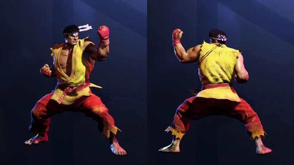 Ryu 的服裝換上醒目的紅腰帶與黃邊手套;Chun-Li 的戰服變成亮黃色絲絨質感;Ken 則搭配紅色上衣與金色髮帶,看起來比以往更像速食廣告代言人。
