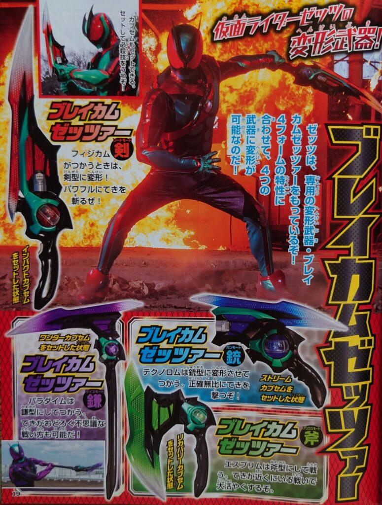 不同形態都擁有自己專屬的武器,BREAKAM ZEZTZER可以轉換零件變成“劍、槍、斧頭、鐮刀”。不過也可用別形態武器,例如這話也可用劍形態的BREAKAM ZEZTZER,後來才轉換成槍。(嗯,我想起了DEN-O 武器DEN-GASHER了。)