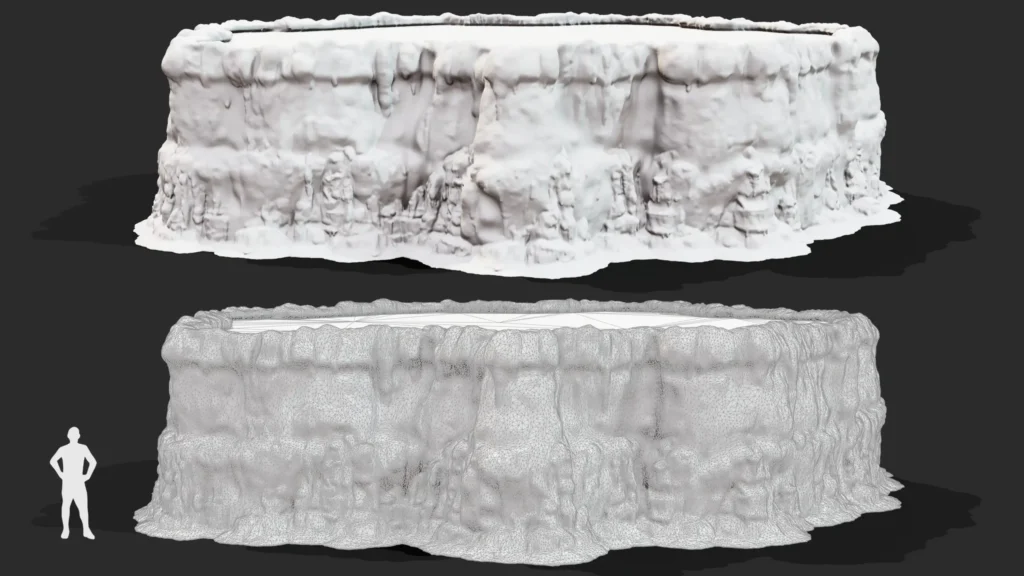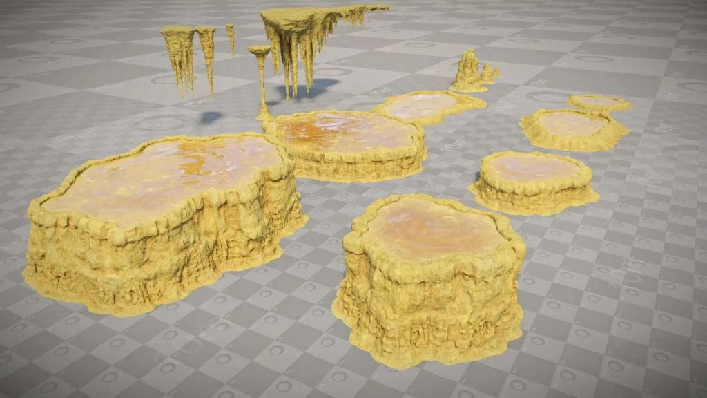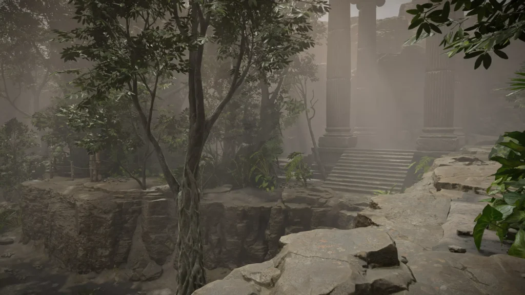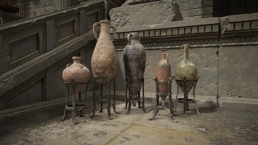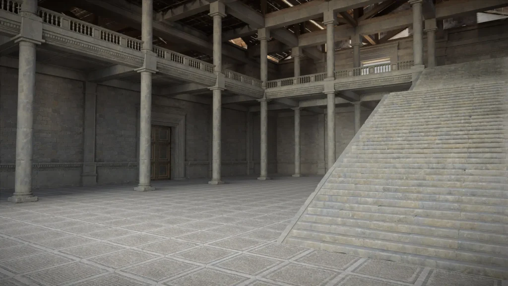 根據流出的 23 張開發照片,遊戲場景包括巨大神廟、被硫磺湖包圍的洞窟、以及多層結構的遺跡區域,顯然是為多人戰鬥量身打造的地圖設計。最引人注目的地點名為「Hades’ Armory」,從兩張不同階段的截圖可見該區有「正常」與「被詛咒」兩種狀態——後者佈滿紅色腐蝕紋理,暗示或許是一種劇情或機制轉換效果。