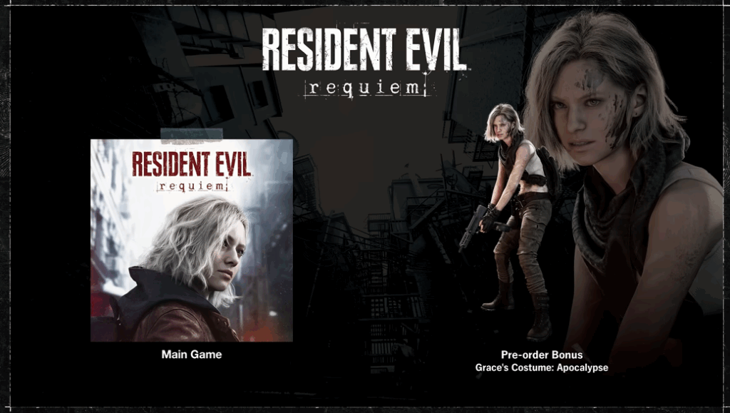 此外,卡普空官方購物網站 e-Capcom 亦同步開放 Playstaion 5 與 Switch 2 版《Resident Evil Requiem》收藏家套組 預購,除了遊戲本體外,內容包含遊戲鐵盒、Grace 壓克力立牌,以及特製外盒包裝。