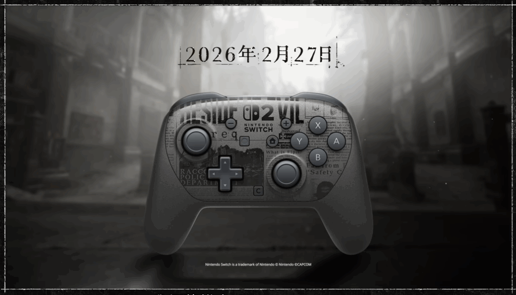 而最讓任天堂收藏家心動的,是卡普空公布的實體周邊——任天堂 Switch 2 Pro 專用手把,採「槍械黑」配色,刻印《Resident Evil Requiem》報紙版圖樣;更誇張的是,官方確認將於夏季推出 Grace Ashcroft amiibo,成為惡靈古堡史上第一位女主角 amiibo,外觀則完全沒公佈,保持神秘感。