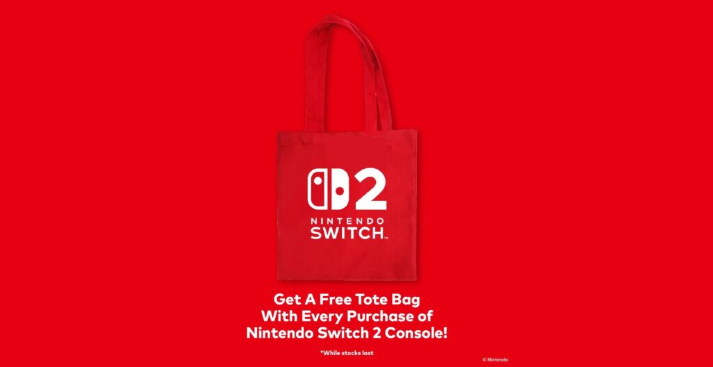 任天堂 Switch 2 將於 2025 下半年在全球多地同步發售,而馬來西亞總代理 Maxsoft(m.m.soft)也在今日透過官方促銷物料,確認了當地首波主機套裝的實體內容物:標準版 Switch 2 與捆綁版(含《Mario Kart World》實體卡帶)將一律隨盒附贈印有 Switch 2 Logo 的紅色環保袋,數量有限,送完為止。
